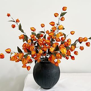 | 3Pcs 27.56″ Artificial Chinese Lantern Flowers Stems Realistic Orange Red Silk Faux Winter Cherry Fake Fall Lanterns Flowers Plants for Vase Bouquets Wedding Home Office Halloween Festival Fall Decor Best Overall | ![]() | Check Price | |